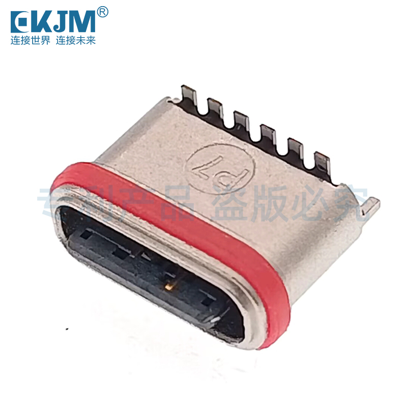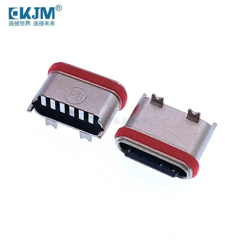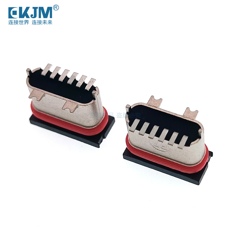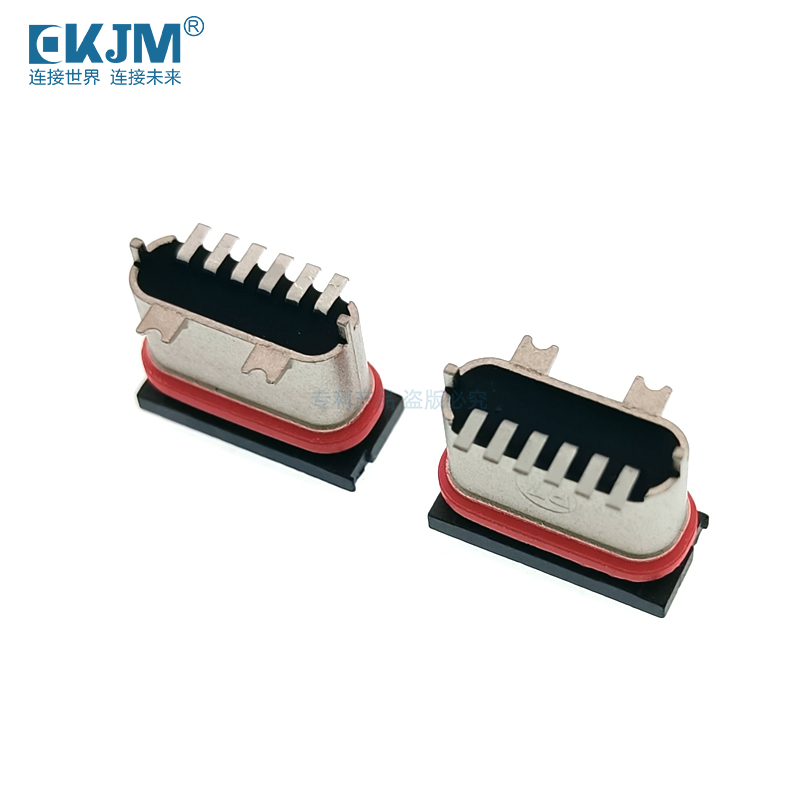 防水TYPE-C 6P U型立貼帶貼片腳母座